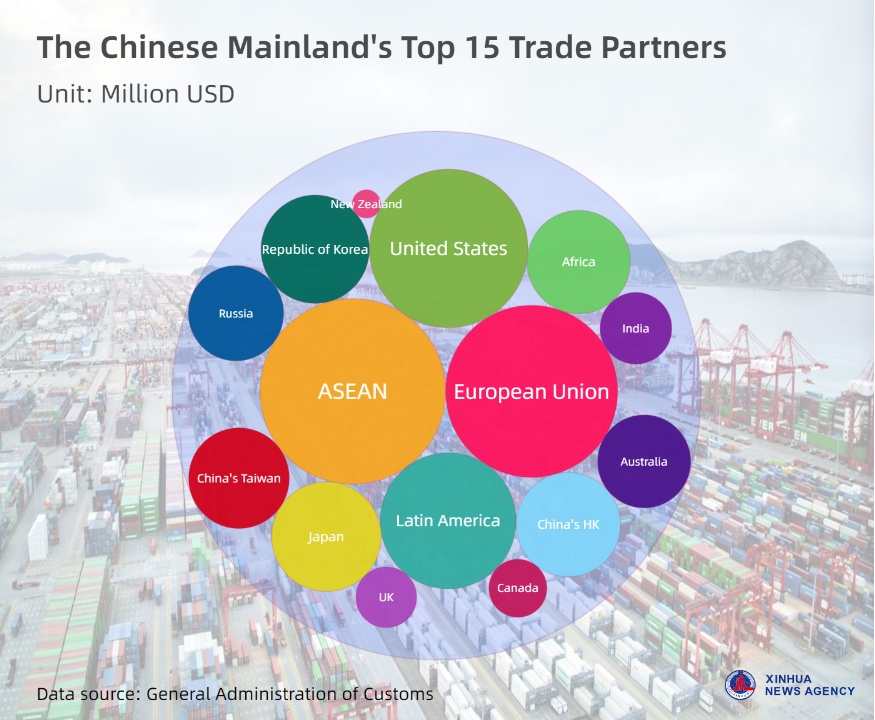 Friday's GAC data also showed that private businesses have played a bigger role in prompting the growth of foreign trade. According to Wang, total trade business entities with import and export records surpassed 600,000 for the first time in 2023, and private enterprises stood at 556,000, taking the lion's share.