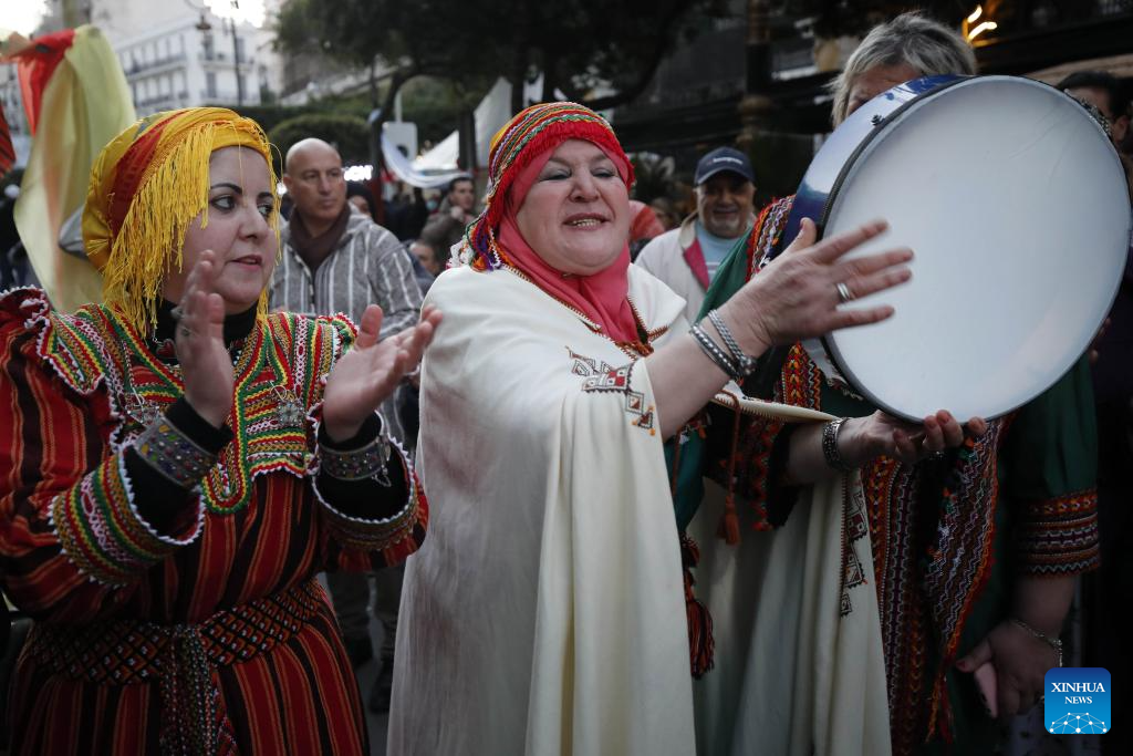 People attend a celebration of Amazigh New Year in Algiers, Algeria, on Jan. 12, 2024. Imazighen in Algeria celebrated their New Year on Friday. (Xinhua)