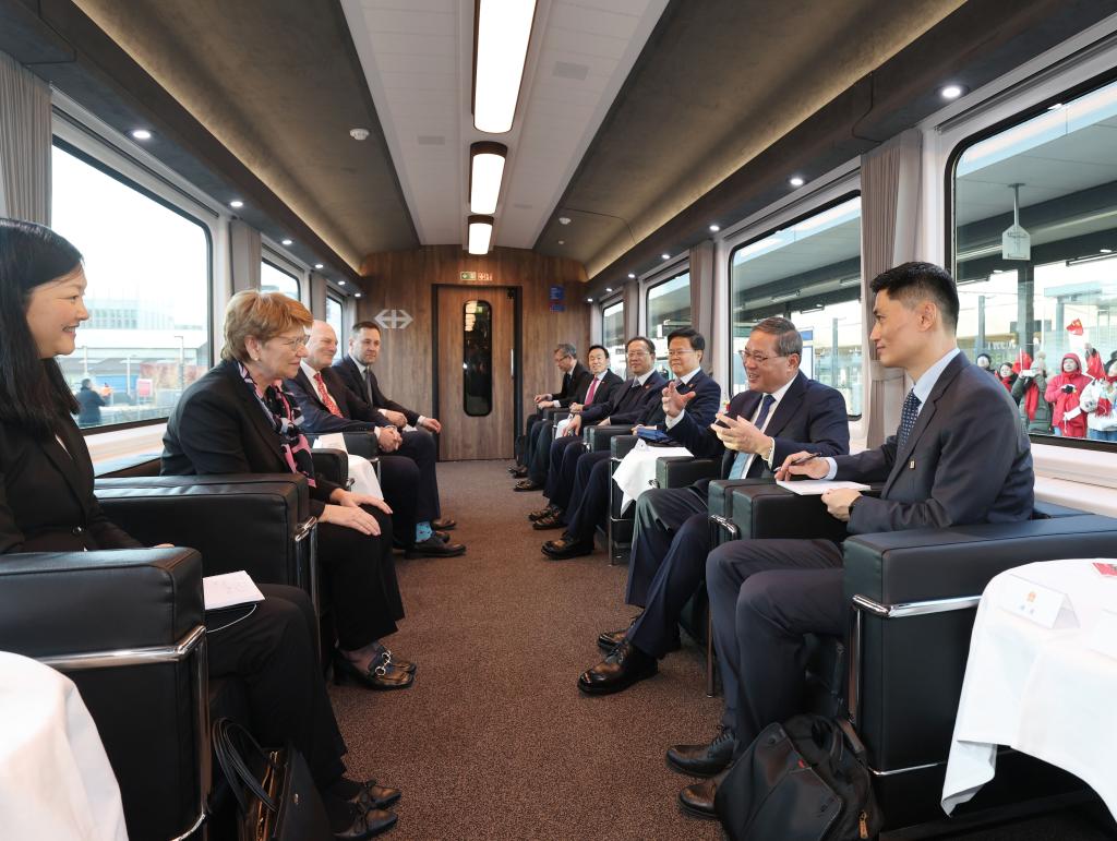 Li made the remarks on a special train from Zurich to Bern, the capital of Switzerland, during which he engaged in candid exchanges with President of the Swiss Confederation Viola Amherd in a relaxing and friendly atmosphere.