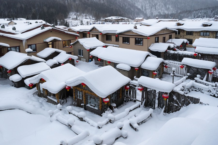 This photo taken on Dec. 14, 2022 shows a view of the Snow Town scenic spot in Hailin City in northeast China's Heilongjiang Province. (Xinhua/Xie Jianfei)
