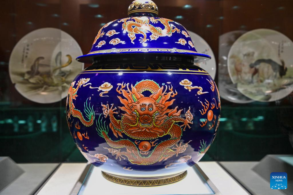 Porcelain artworks are displayed at a Honglyucai (Red and Green Color) Porcelain museum in Honglyucai Village, Changzhi City of north China's Shanxi Province, Jan. 3, 2024. (Xinhua/Yang Chenguang)