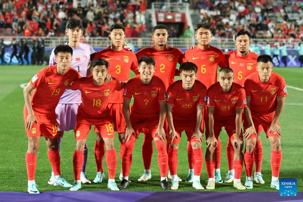 The line-up players of China pose for photo prior to the Group A match between China and Tajikistan at AFC Asian Cup in Doha, Qatar, on Jan. 13, 2024. (Xinhua/Jia Haocheng)