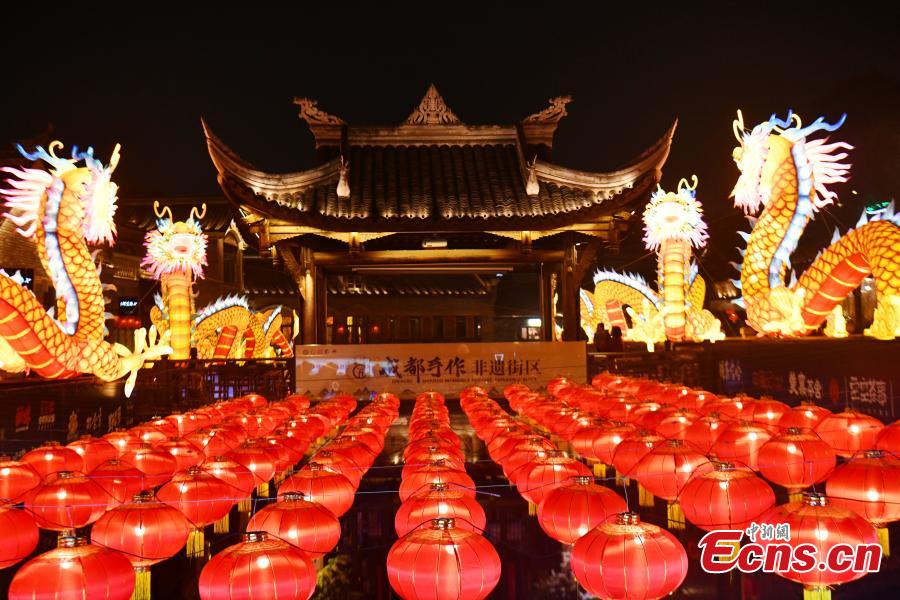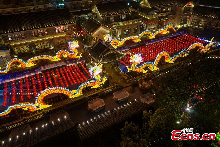 Loong-themed lanterns add festive atmosphere to city
