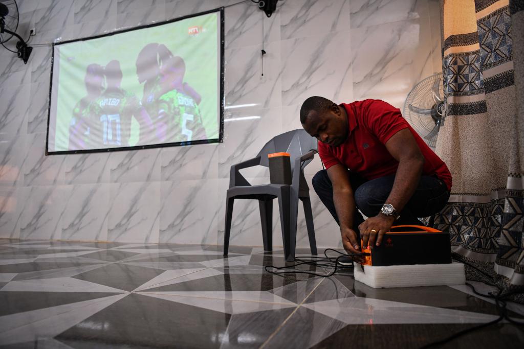 People watch the 2023 Africa Cup of Nations (AFCON) matches with the help of China's satellite TV project in Yaou village, Cote d'Ivoire, Jan. 14, 2024. (Xinhua/Han Xu)