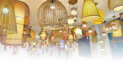 Photo shows bamboo-made lanterns. (People's Daily/Wang Yinxin)