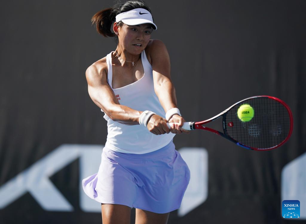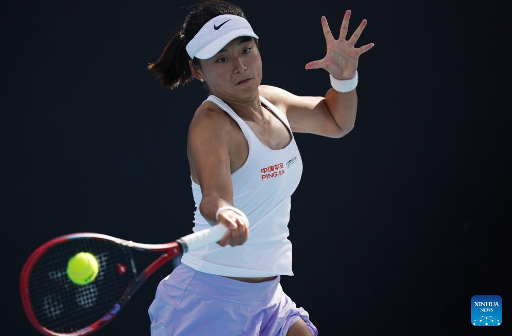 Wang Yafan of China hits a return during the women's singles first round match between Wang Yafan of China and Sorana Cirstea of Romania at the Australian Open tennis tournament in Melbourne, Australia, Jan. 16, 2024. (Xinhua/Wang Shen)