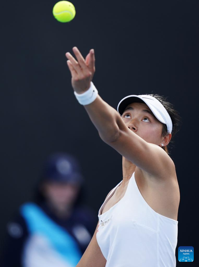 Wang Yafan of China serves during the women's singles first round match between Wang Yafan of China and Sorana Cirstea of Romania at the Australian Open tennis tournament in Melbourne, Australia, Jan. 16, 2024. (Xinhua/Wang Shen)