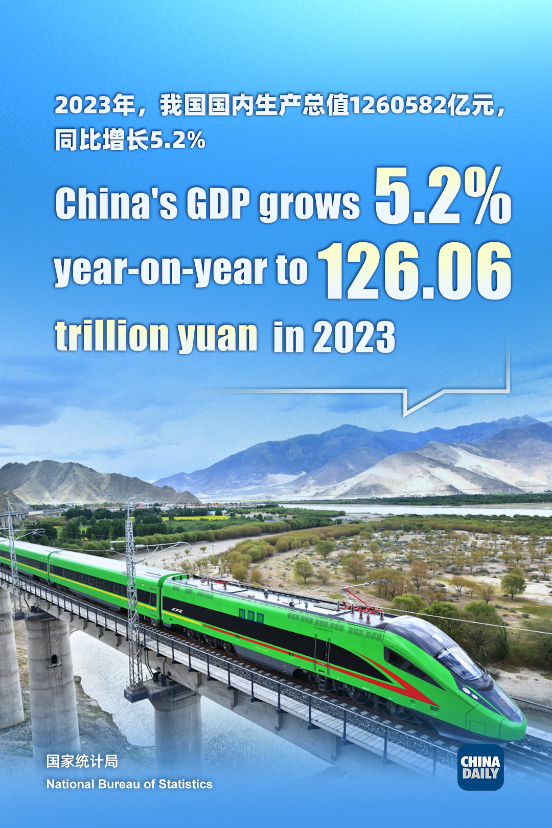 China's gross domestic product expanded by 5.2 percent in 2023 - meeting the country's preset annual growth target of around 5 percent, fueled by a slew of policy measures taking effect gradually last year, official data showed on Wednesday.