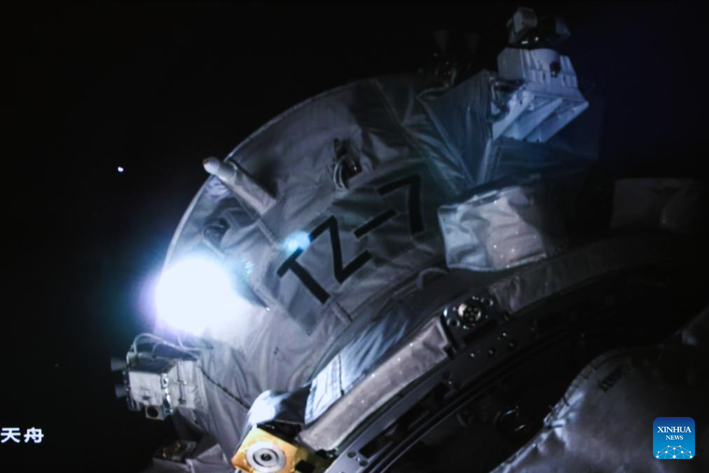 BEIJING, Jan. 18 (Xinhua) -- China's cargo craft Tianzhou-7 completed its status setting and docked with the orbiting Tiangong space station on Thursday, the China Manned Space Agency (CMSA) said.