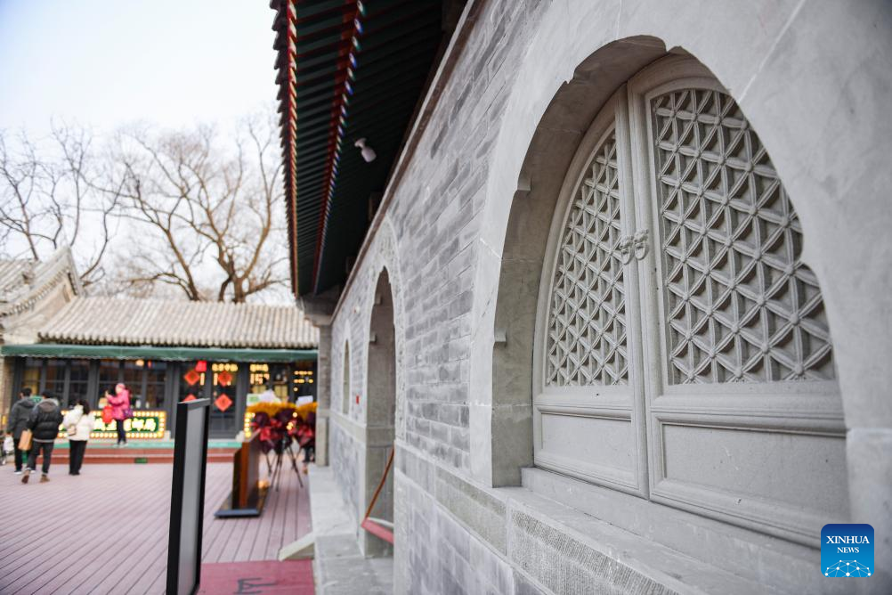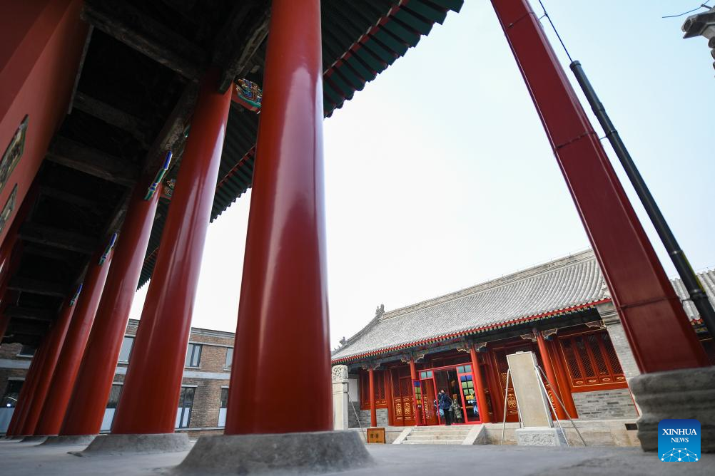 This photo taken on Jan. 18, 2024 shows a view of the Hong'en Temple in Beijing, capital of China. The over 700-year-old Hong'en Temple opened to public recently. It is located to the north of the Bell Tower in Beijing, with Beijing Central Axis passing through its west annex hall.