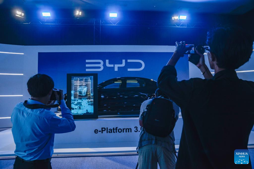 JAKARTA, Jan. 18 (Xinhua) -- China's BYD, a global leader in the sale of pure electric vehicles (EV), launched here on Thursday three new electric passenger cars to further expand in the Southeast Asia region.