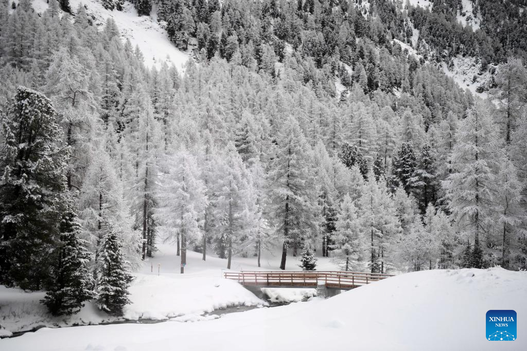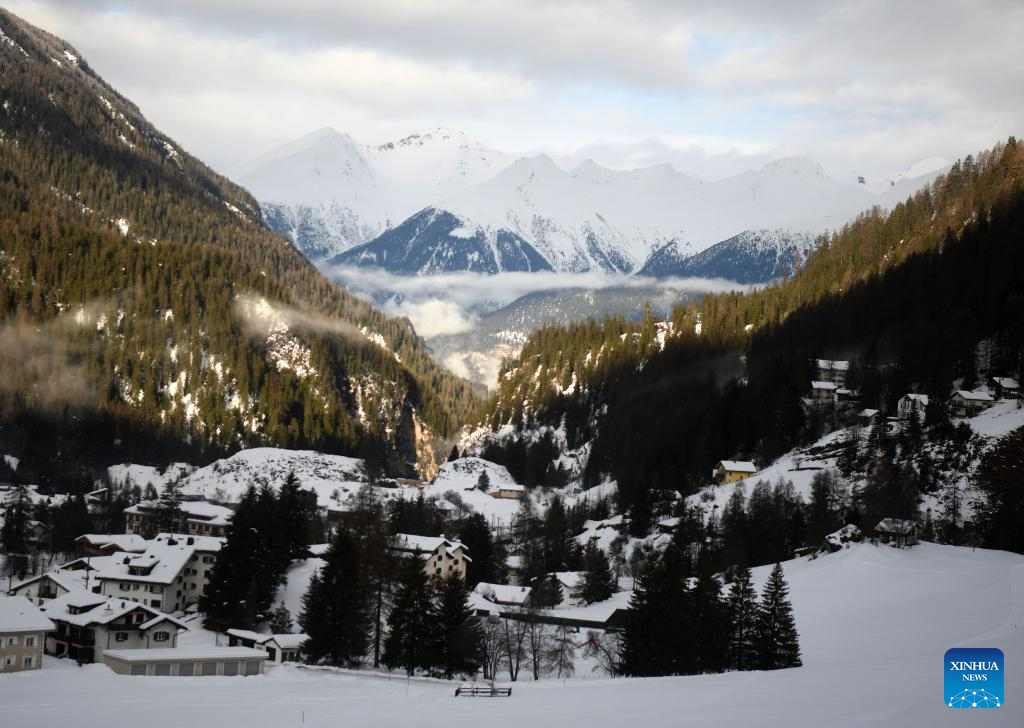 This photo taken on the train from St. Moritz to Davos shows the snow scenery in Switzerland, Jan. 18, 2024. (Xinhua/Lian Yi)