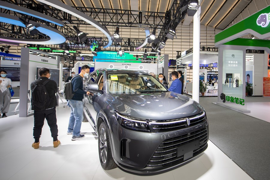 This photo taken on Nov. 10, 2022 shows a vehicle displayed at the booth of Huawei during the Light of Internet Expo in Wuzhen, east China's Zhejiang Province. (Xinhua/Jiang Han)