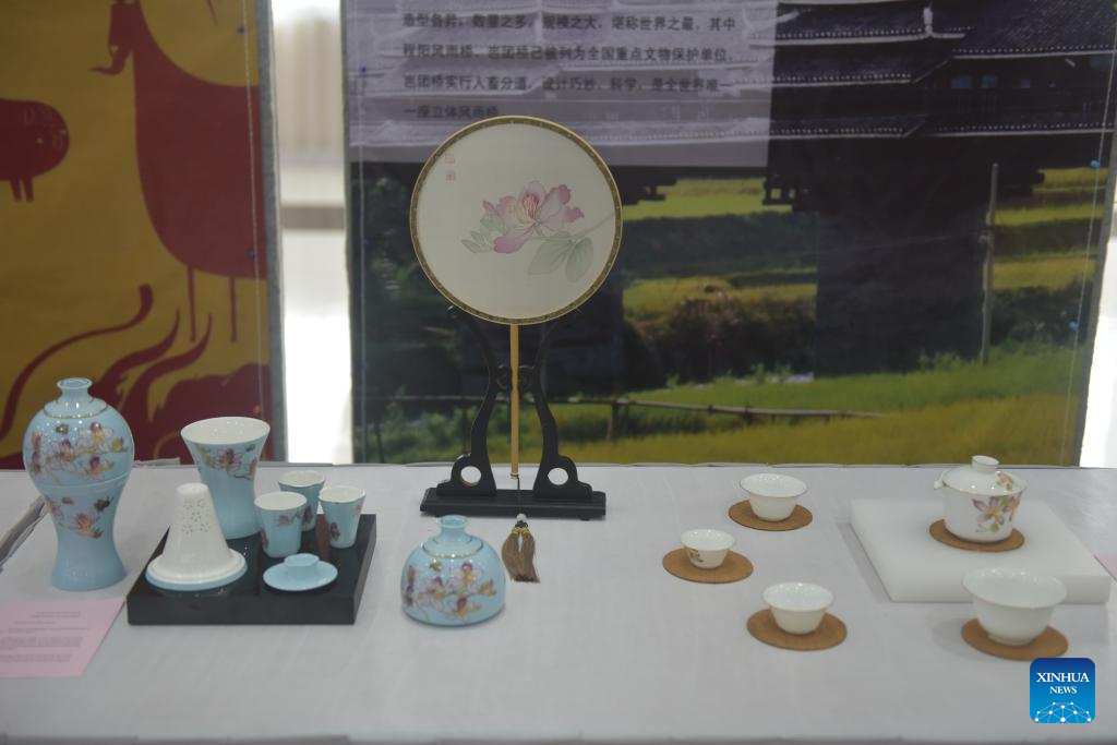 Exhibits are seen at a Chinese and Cambodian cultural exhibition in Phnom Penh, Cambodia, Jan. 21, 2024. A China-Cambodia "Beauty of Intangible Heritage" exhibition kicked off here in the Cambodian capital on Sunday, captivating hundreds of visitors. (Photo by Liao Hongqing/Xinhua)
