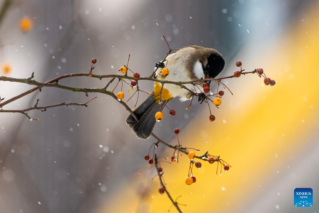 A bird forages in Bijie of southwest China's Guizhou Province, Jan. 22, 2024. (Photo by Li Hua/Xinhua)
