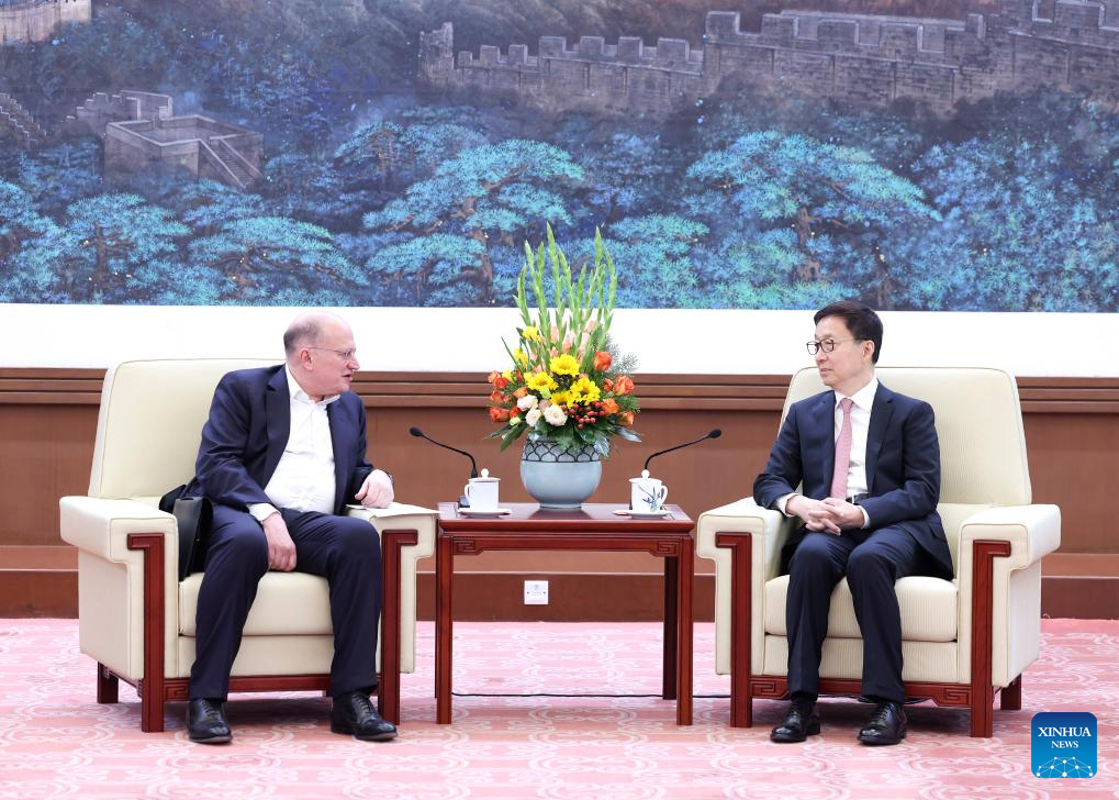 Chinese Vice President Han Zheng meets with HSBC Group Chairman Mark Tucker in Beijing, capital of China, Jan. 22, 2024. (Xinhua/Pang Xinglei)