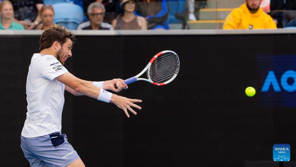 Cameron Norrie competes during the men's singles 4th round match between Alexander Zverev of Germany and Cameron Norrie of Britain at the Australian Open tennis tournament in Melbourne, Australia, Jan. 22, 2024. (Photo by Chu Chen/Xinhua)
