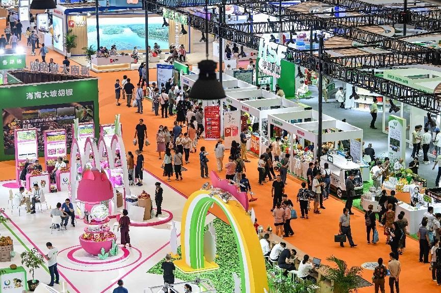 The China (Hainan) International Winter Trade Fair for Tropical Agricultural Products 2023 kicks off at the Hainan International Convention and Exhibition Center in Haikou, south China's Hainan province, Dec. 14, 2023. (People's Daily Online/Su Bikun)