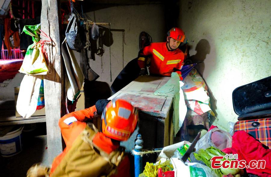 Rescuers inspect the damage of local houses in Wushi County of Aksu Prefecture, northwest China's Xinjiang Uygur Autonomous Region, Jan. 23, 2024. (Photo: China News Service/Wang Xudong)