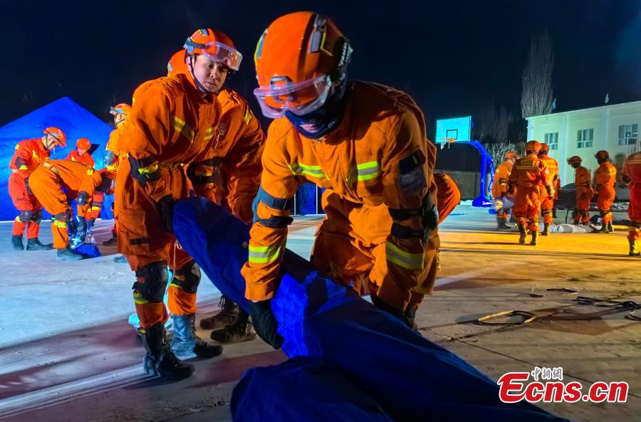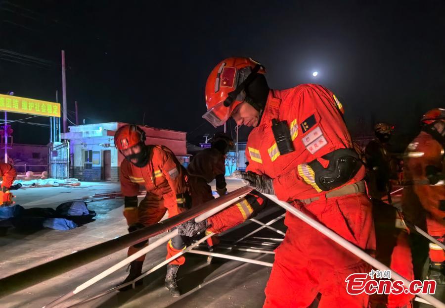 Rescuers set up temporary shelters in Wushi County of Aksu Prefecture, northwest China's Xinjiang Uygur Autonomous Region, Jan. 23, 2024. (Photo: China News Service/Wang Xudong)