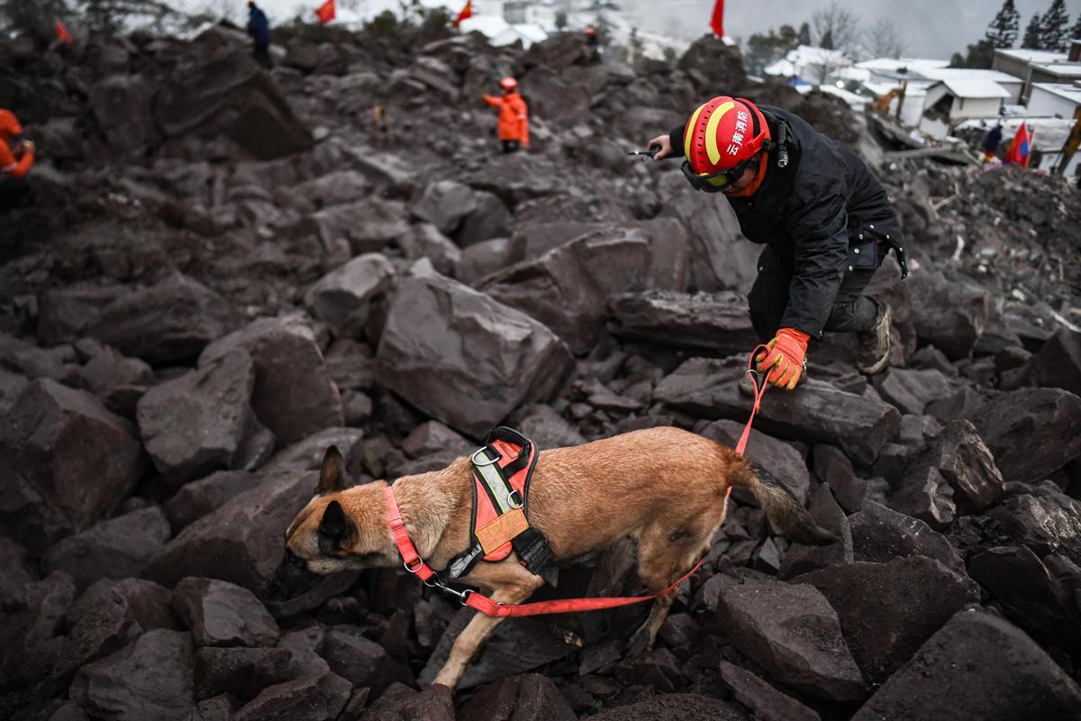 Rescuers search for survivors on Tuesday after a landslide struck a mountainous village in Zhaotong, Yunnan Province, on Monday. [Photo by JIANG WENYAO / XINHUA]
