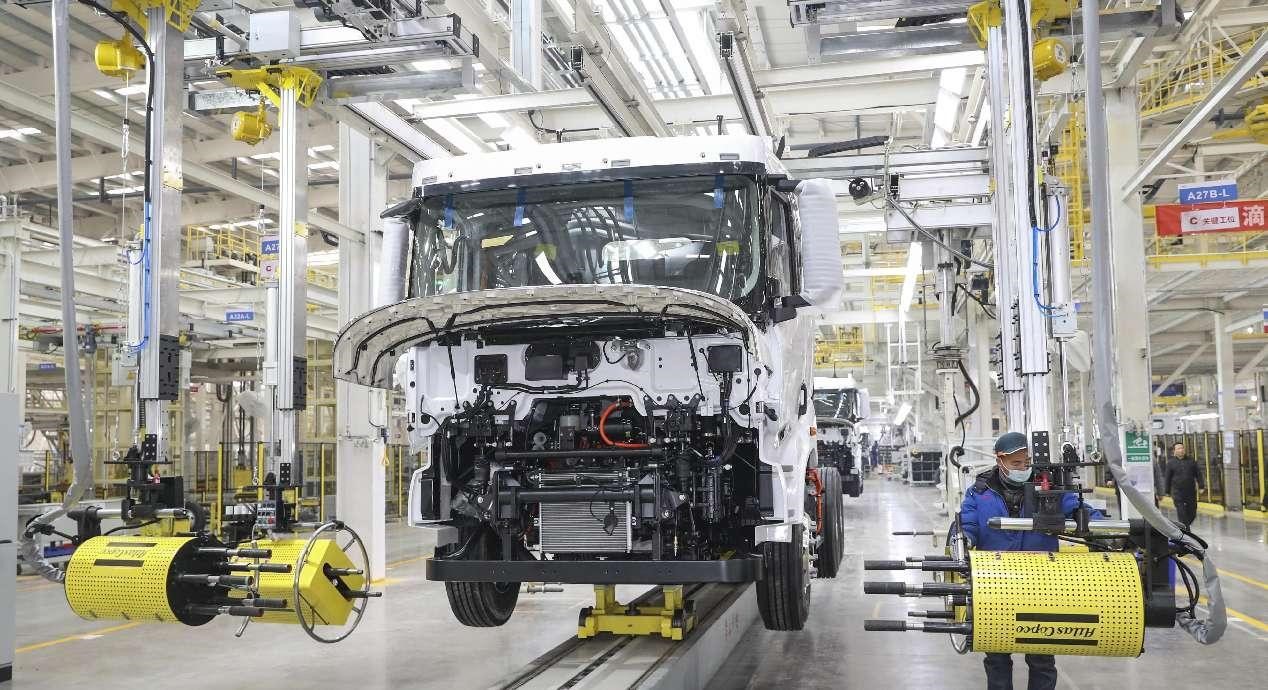 New energy vehicles for commercial use are manufactured in a factory of Chinese carmaker BYD in Huai'an, east China's Jiangsu province. (People's Daily Online/Zhao Qirui)