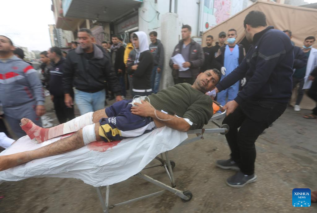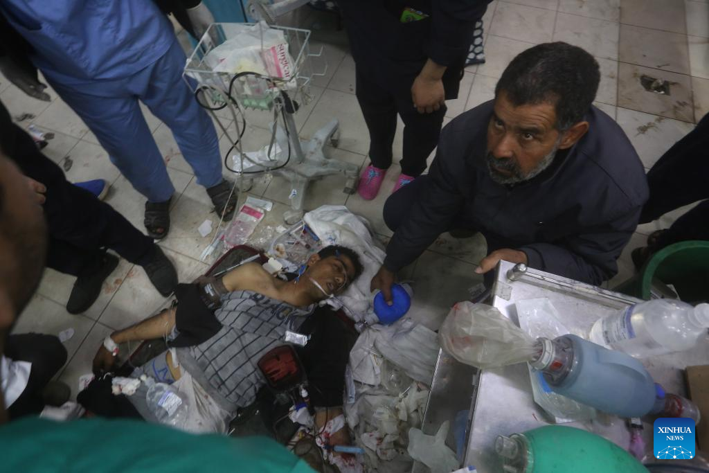 Injured people are seen at a hospital in the southern Gaza Strip city of Rafah, on Jan. 23, 2024. The Palestinian death toll from the ongoing Israeli attacks on the Gaza Strip has risen to 25,490 since Oct. 7, 2023, the Hamas-run health ministry said on Tuesday. (Photo by Khaled Omar/Xinhua)