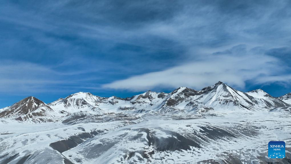 An aerial drone photo shows Mt. Gangshika in Menyuan Hui Autonomous County, northwest China's Qinghai Province, Jan. 23, 2024. (Xinhua/Geng Huihuang)