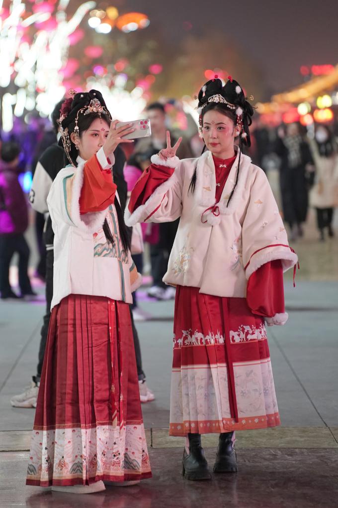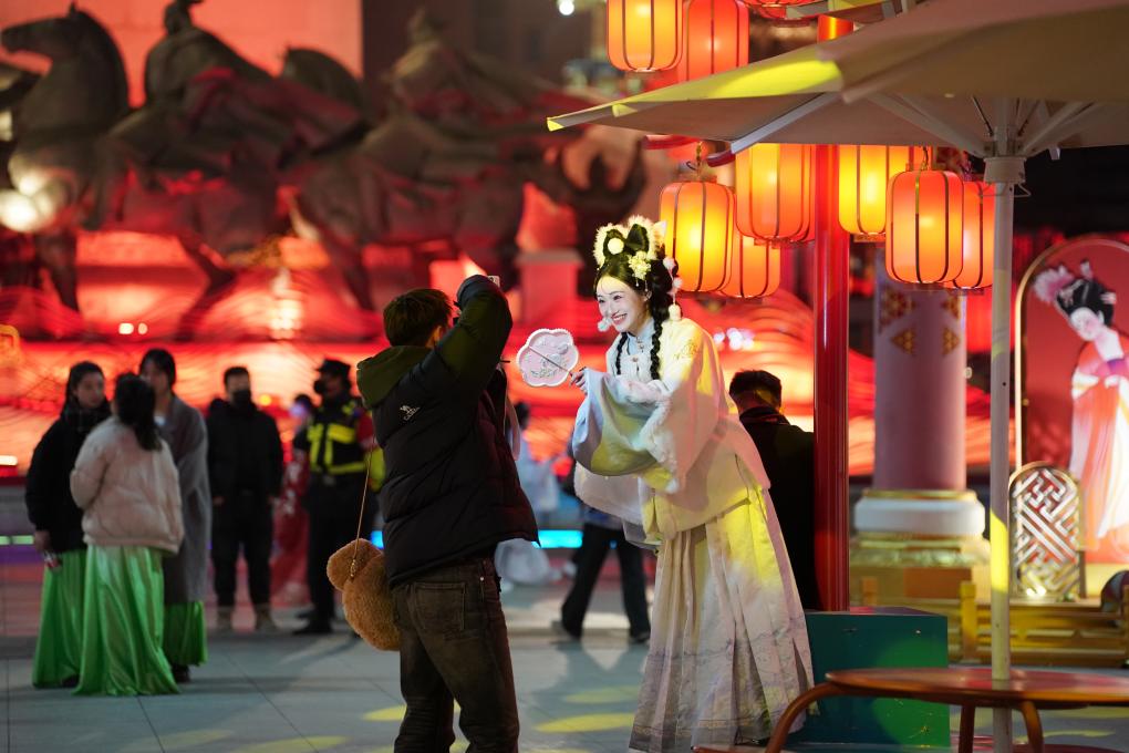 Tourists visit the Datang Everbright City scenic area in Xi'an, northwest China's Shaanxi Province, Dec. 6, 2023. (Xinhua/Shao Rui)