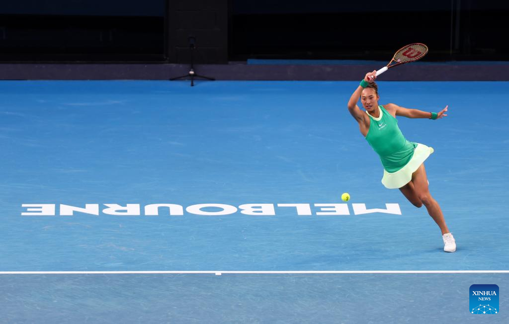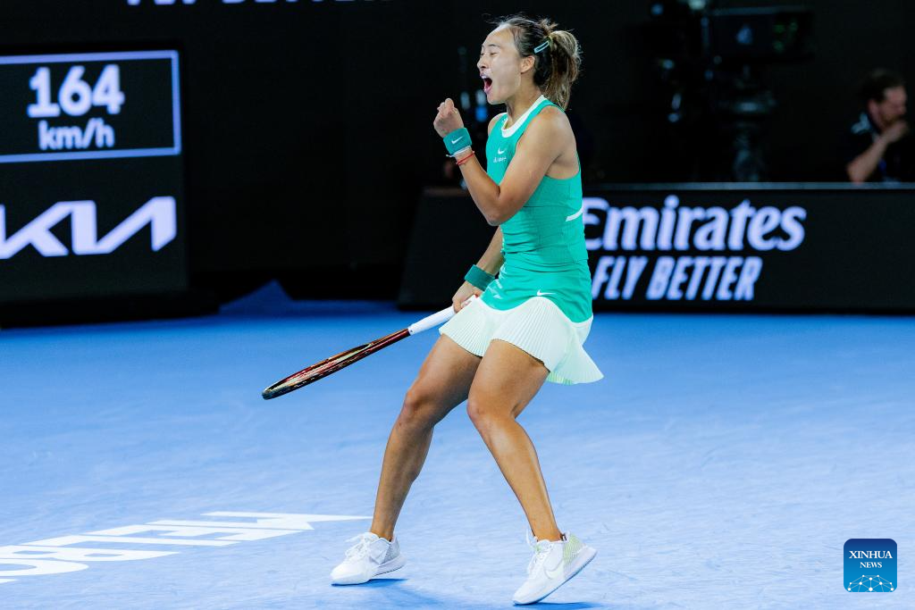 MELBOURNE, Jan. 24 (Xinhua) -- China's top-ranked tennis player Zheng Qinwen reached her maiden Grand Slam semifinal after a comeback victory over unseeded Anna Kalinskaya at the Australian Open on Wednesday.