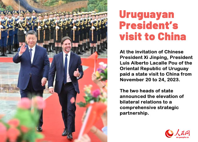 At the invitation of Chinese President Xi Jinping, President Luis Alberto Lacalle Pou of the Oriental Republic of Uruguay paid a state visit to China from November 20 to 24, 2023.?