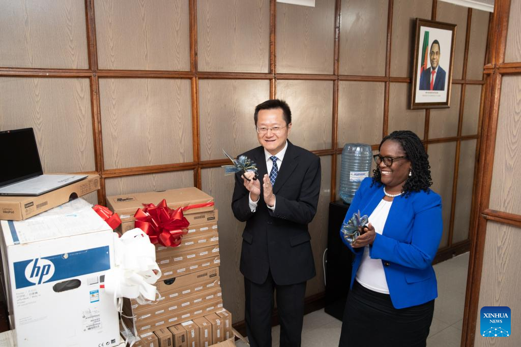 The equipment, which included 20 laptops and 20 printers, was handed over by Chinese Ambassador to Zambia Du Xiaohui at a ceremony attended by Etambuyu Gundersen, permanent secretary of the Zambian Ministry of Foreign Affairs and International Cooperation, and other officials from the ministry and the Chinese embassy.