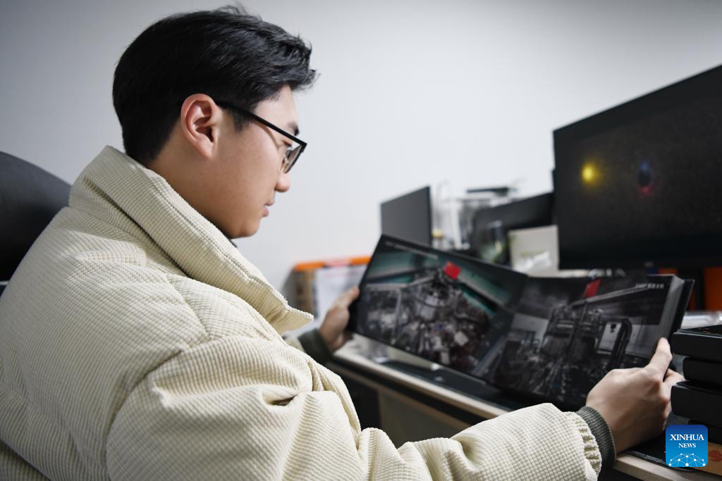 Yang Yuanfan shows scientific visualization products created by his company in Hefei, east China's Anhui Province, Jan. 18, 2024. (Xinhua/Zhang Duan)