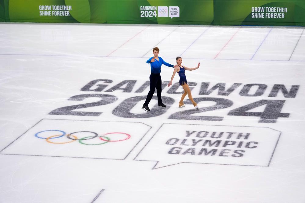 Cayla Smith (R) and Jared McPike of the United States compete during the pair skating short program of figure skating event at the Gangwon 2024 Winter Youth Olympic Games in Gangneung, South Korea, Jan. 27, 2024. (Xinhua/Zhang Xiaoyu)
