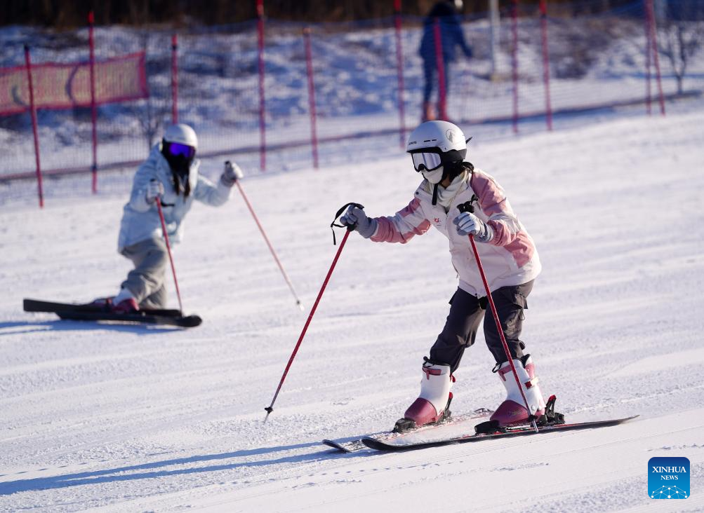 Taiwan students ski at a ski resort in Changchun, northeast China's Jilin Province on Jan. 25, 2024. (Xinhua/Chen Yehua)