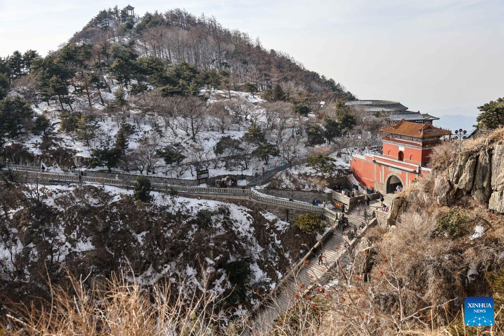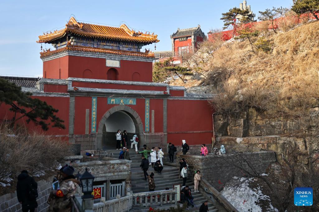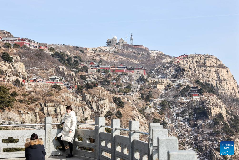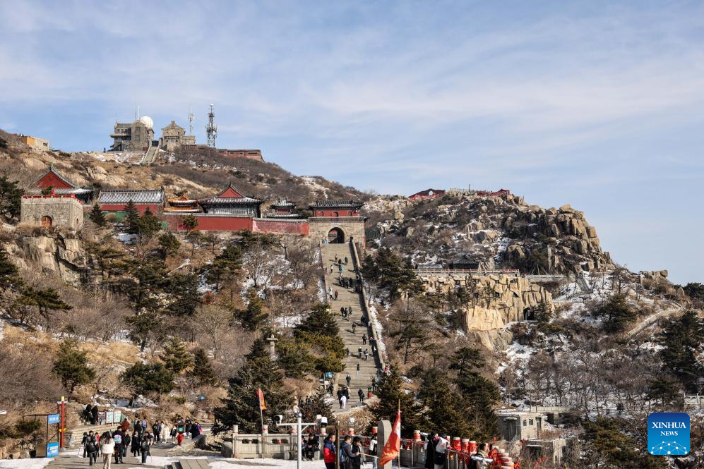 Tourists visit the Mount Tai scenic area in east China's Shandong Province, Jan. 26, 2024. With its natural and cultural values well interconnected, Mount Tai was listed as a World Cultural and Natural Heritage site by UNESCO in 1987, the first ever in China. In 2023, the Mount Tai scenic area received over 8.61 million visitors, a new record over the years. (Xinhua/Zhu Zheng)