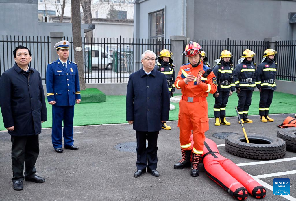 Chinese Vice Premier Zhang Guoqing, also a member of the Political Bureau of the Communist Party of China Central Committee, visits a fire rescue station in Chaoyang District while inspecting work on fire safety in Beijing, capital of China, Jan. 30, 2024. (Xinhua/Yin Bogu)