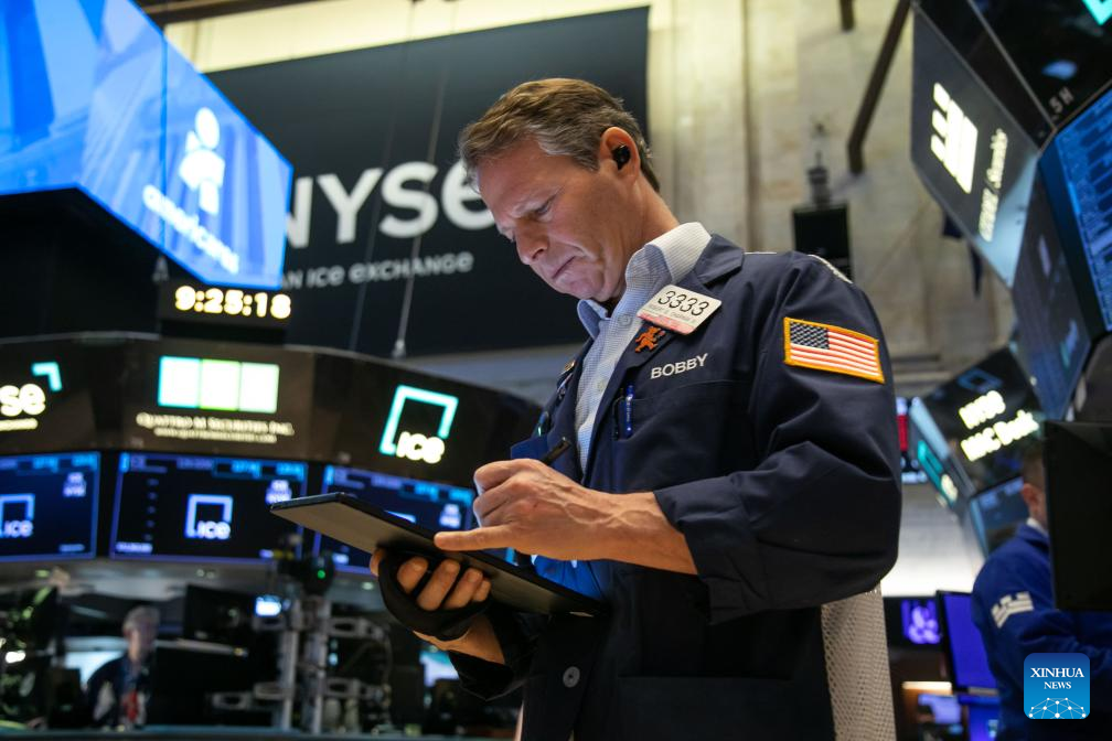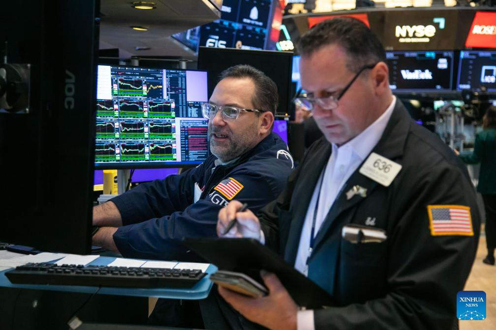 NEW YORK, Jan. 31 (Xinhua) -- U.S. stocks ended lower on Wednesday, on the central bank's anticipated decision to hold rates steady, and Fed Chair Jerome Powell's hint that the central bank would not begin cutting rates at its next meeting in March.