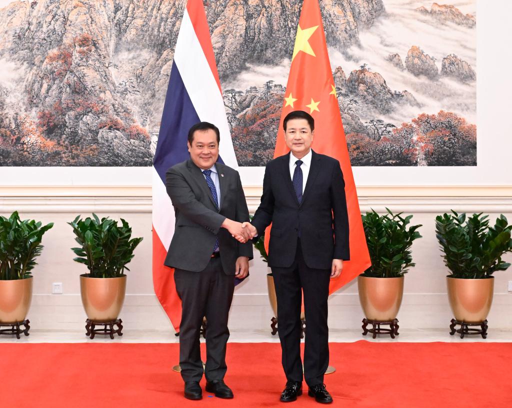 He expressed the hope that China and Thailand will implement the important consensus reached by leaders of the two countries, deepen cooperation on drug control, optimize the cooperation mode of fugitives and asset recovery, carry out joint law-enforcement operations, crack down on crimes such as drug manufacturing and trafficking, telecommunications and internet fraud, and online gambling in accordance with the law, strengthen practical cooperation on law-enforcement and security, and promote the building of a China-Thailand community with a shared future.