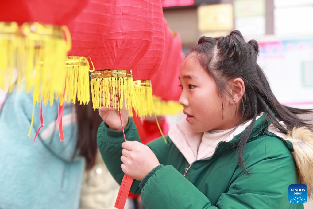 A child solves lantern riddles to welcome the Spring Festival in Qiandongnan Miao and Dong Autonomous Prefecture, southwest China's Guizhou Province, Jan. 31, 2024. People across China are preparing for the upcoming Spring Festival, the biggest occasion for family reunions, and heralds the beginning of spring. (Photo by Tang Peng/Xinhua)