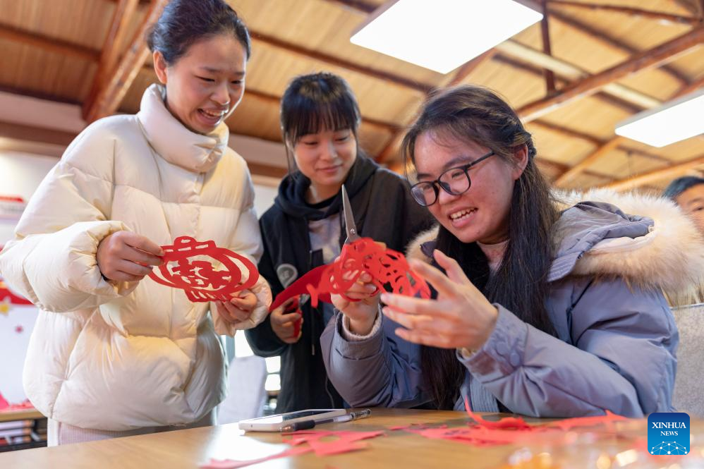 People make paper-cutting decorations together in Lushan, east China's Jiangxi Province, Jan. 31, 2024. People across China are preparing for the upcoming Spring Festival, the biggest occasion for family reunions, and heralds the beginning of spring. (Photo by Han Junxuan/Xinhua)