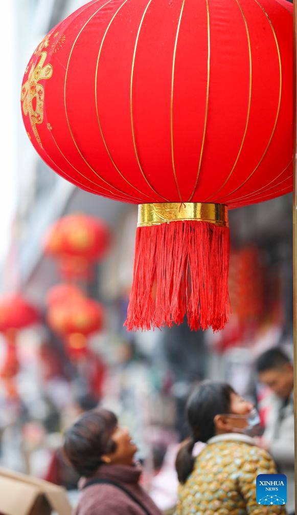 Citizens purchase decorations for the upcoming Spring Festival during a fair in Huaian, east China's Jiangsu Province, Jan. 31, 2024. People across China are preparing for the upcoming Spring Festival, the biggest occasion for family reunions, and heralds the beginning of spring. (Photo by Zhao Qirui/Xinhua)