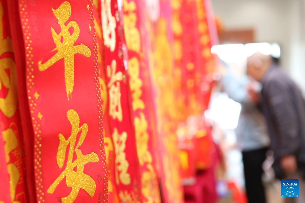 People buy Spring Festival couplets in Kunming, southwest China's Yunnan Province, Jan. 31, 2024. People across China are preparing for the upcoming Spring Festival, the biggest occasion for family reunions, and heralds the beginning of spring. (Photo by Li Yunsheng/Xinhua)