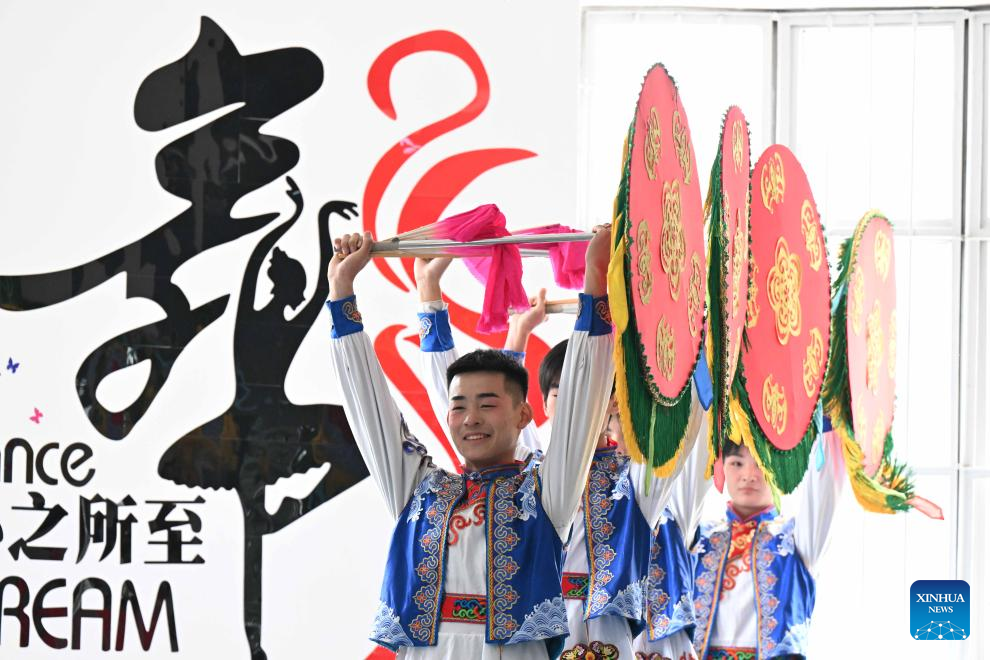 Artists rehearse a dance for the Spring Festival in Shijiazhuang, north China's Hebei Province, Jan. 31, 2024. People across China are preparing for the upcoming Spring Festival, the biggest occasion for family reunions, and heralds the beginning of spring. (Photo by Chen Qibao/Xinhua)