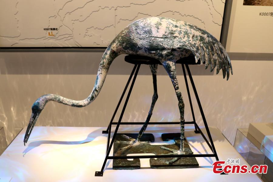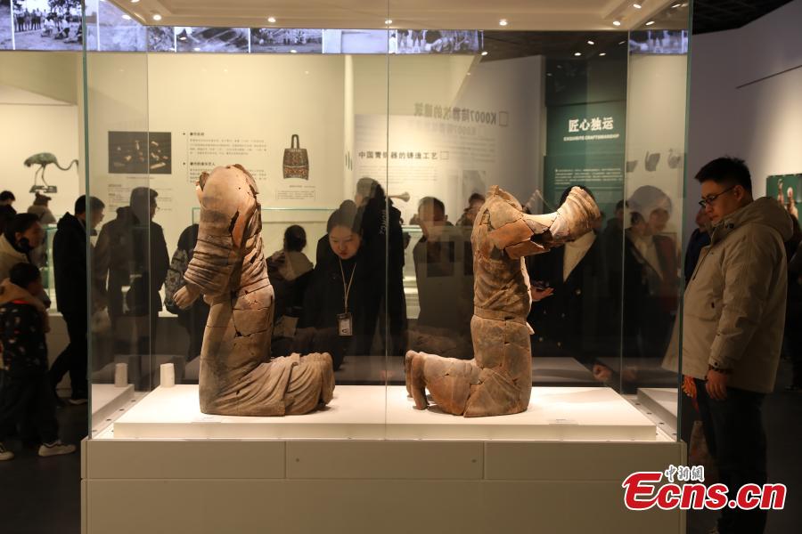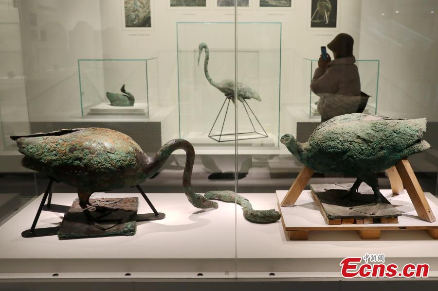 A total of 57 pieces of cultural relics including terracotta figures, bronze aquatic birds were exhibited at the museum.