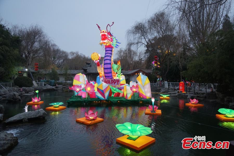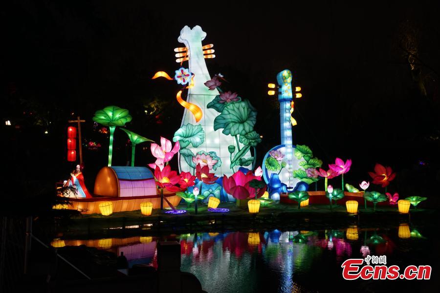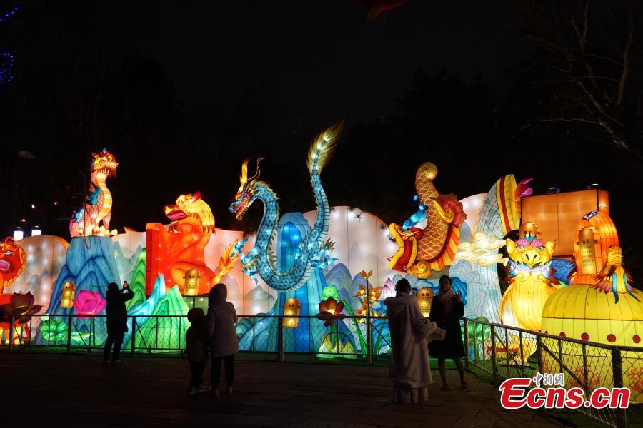 Baotu Spring is lit up by spectacular lanterns to greet the Chinese New Year in Jinan, east China's Shandong Province, Jan. 31, 2024. (Photo: China News Service/Wang Caiyi)
