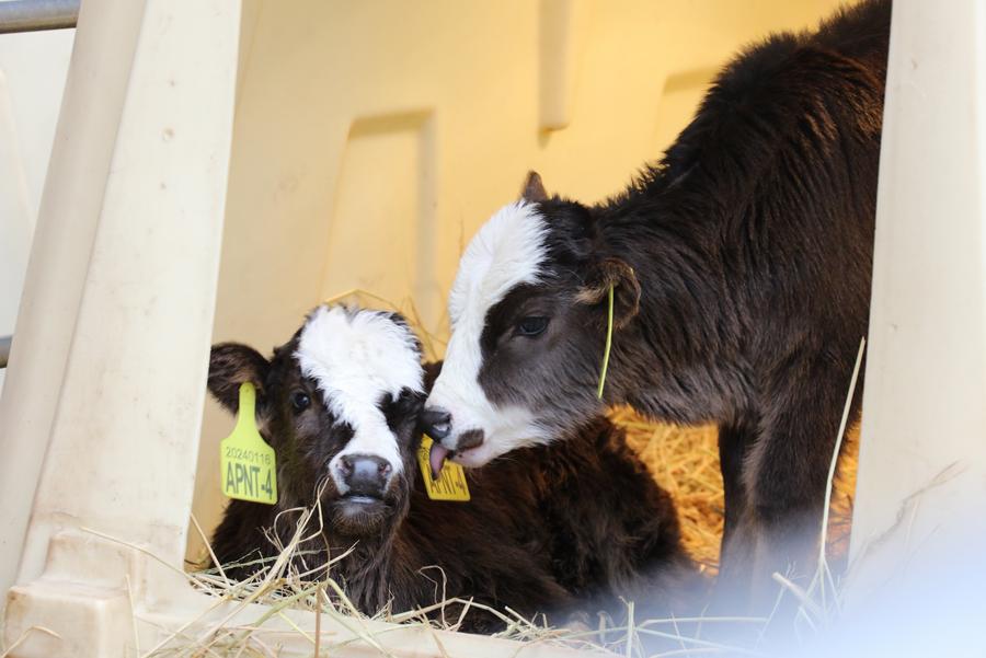 This photo taken on Jan. 29, 2024 shows clones of Apeijiaza cattle in Yunyang County, southwest China's Chongqing Municipality. (Xinhua/Liu Shiping)