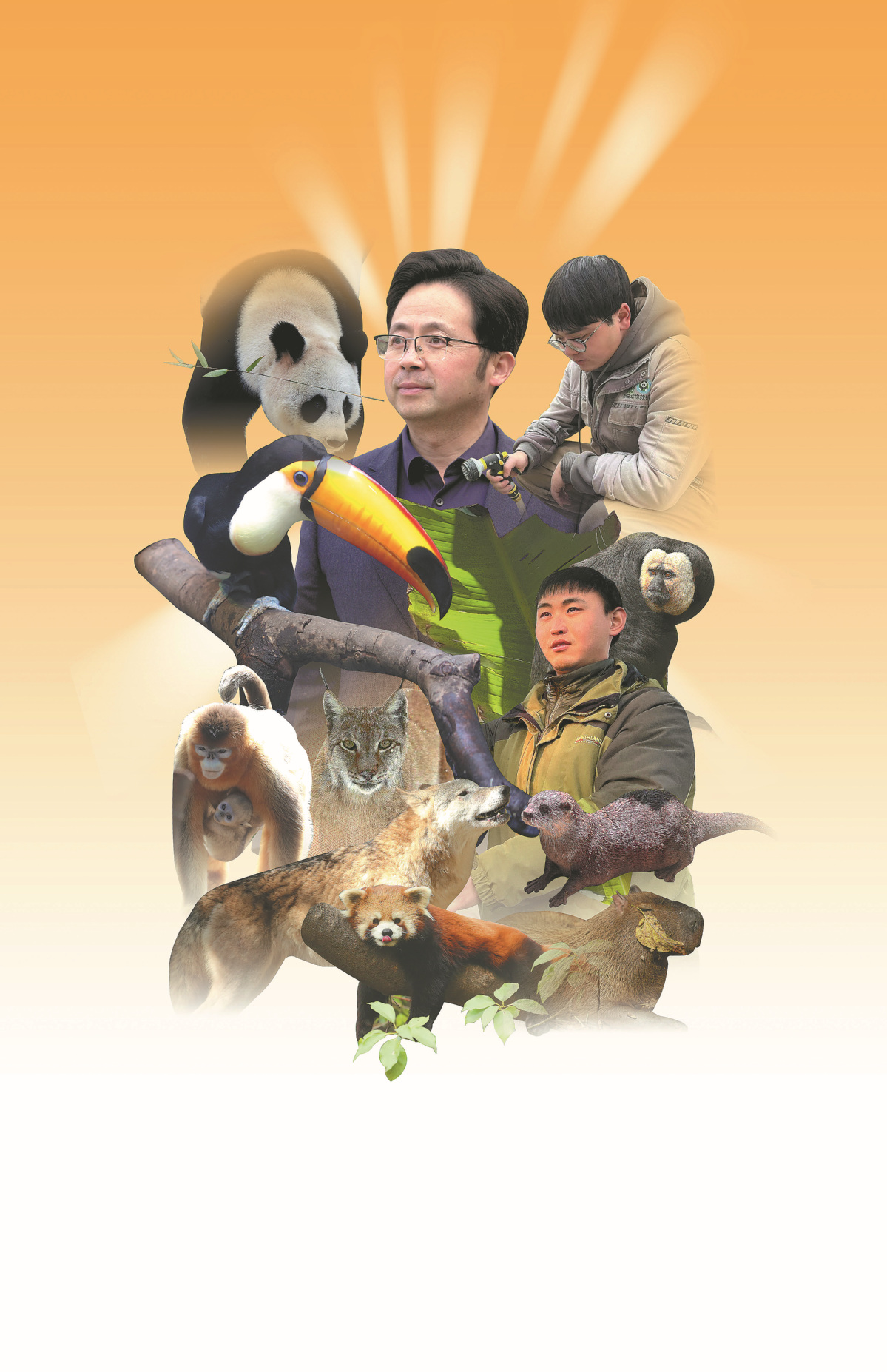 Top center: Shen Zhijun, head of Nanjing Hongshan Forest Zoo. Top right: Jiang Yao, who tends to amphibians. Above right: Jia Tianci, who takes care of some 20 wolves. CHINA DAILY