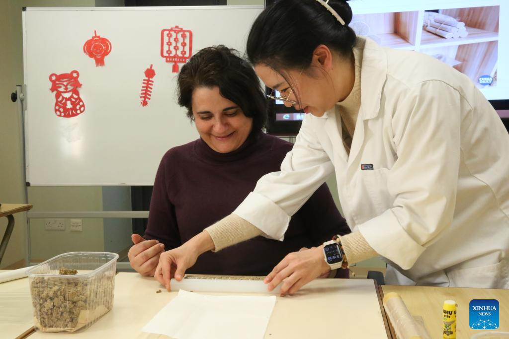 VALLETTA, Feb. 1 (Xinhua) -- Six students from the master's program in traditional Chinese medicine (TCM) and culture at the University of Malta on Thursday participated in a special class to learn the art of crafting moxa sticks used in moxibustion.