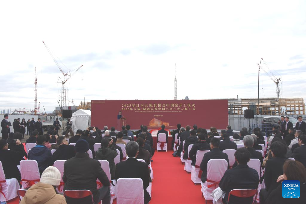 OSAKA, Japan, Feb. 2 (Xinhua) -- The China Pavilion at Expo Osaka, Japan, broke ground here on Friday, marking the commencement of construction for the venue highlighting green development and human-nature harmony.